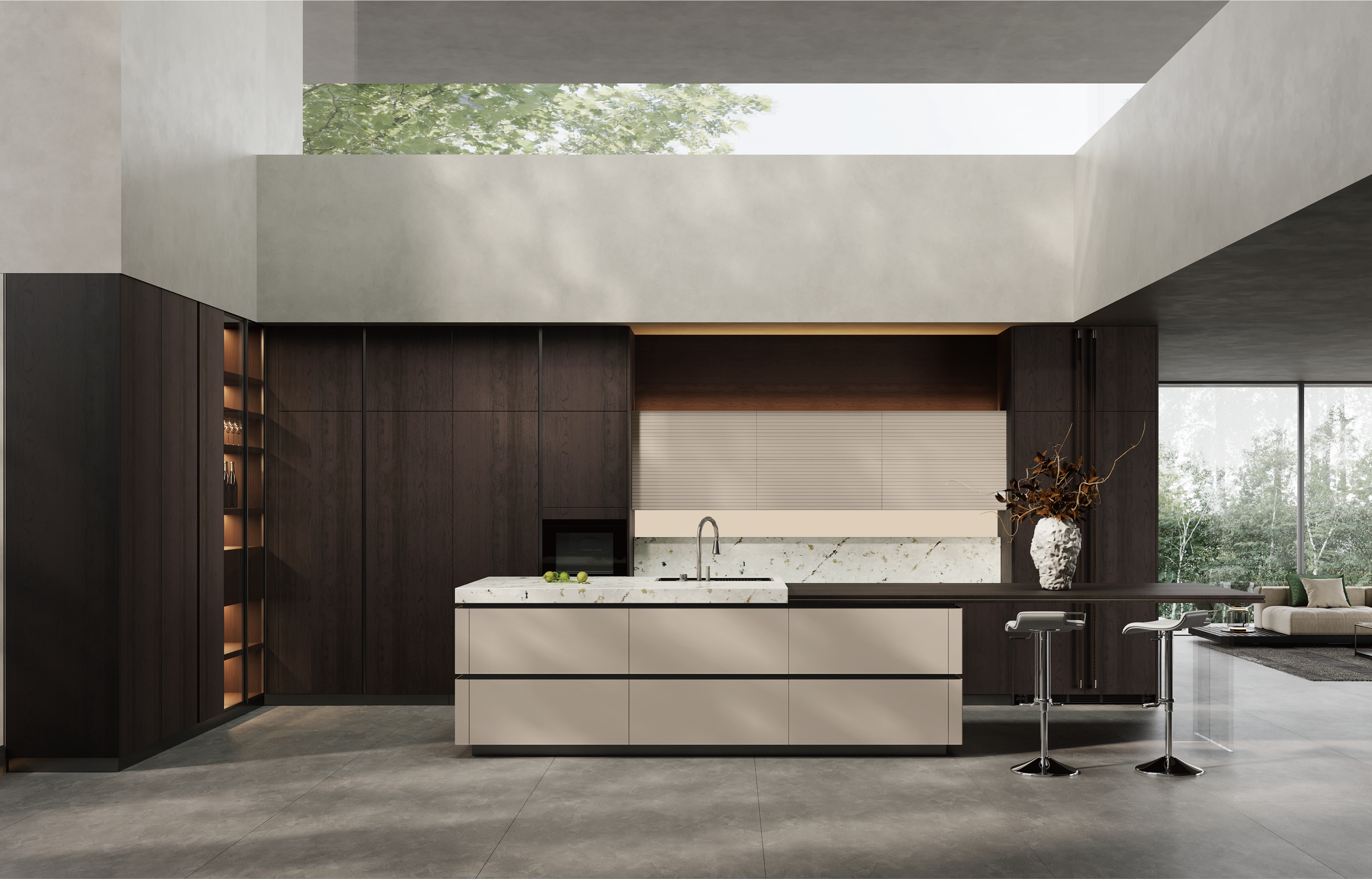 通过韦德1946厨柜量体裁柜,定制出适合主厨下厨的烹饪区和洗涤区的舒适高度。